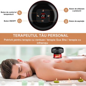 Aparat masaj vacuum cu Gua Sha, încălzire, LCD, USB – ZEQAS
