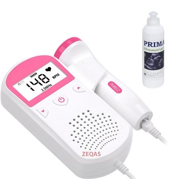 Doppler fetal pentru gravide, cu gel inclus, portabil, alb/roz – ZEQAS