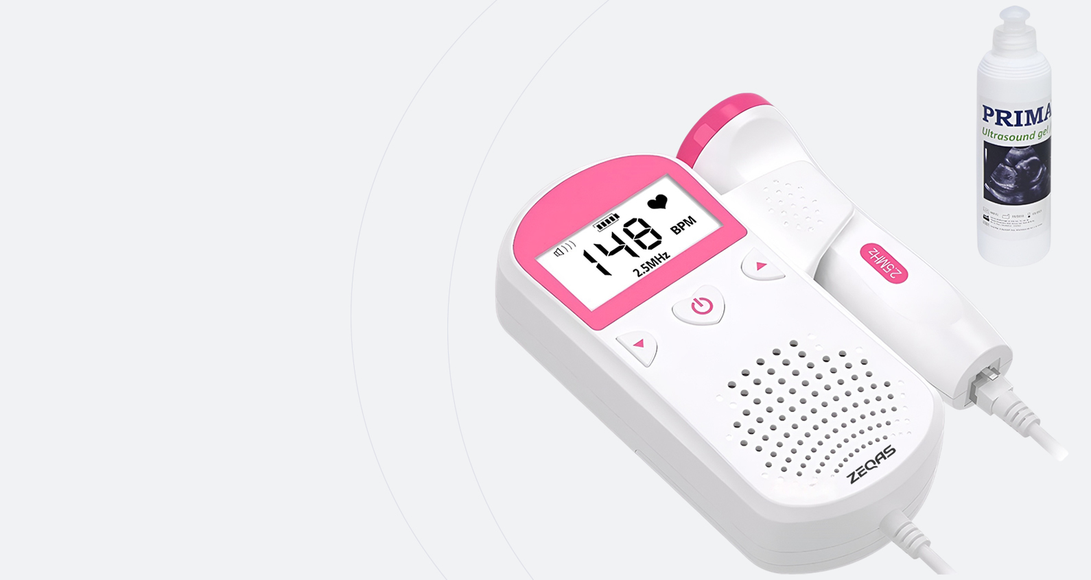 Doppler fetal pentru gravide, cu gel inclus, portabil, alb/roz – ZEQAS