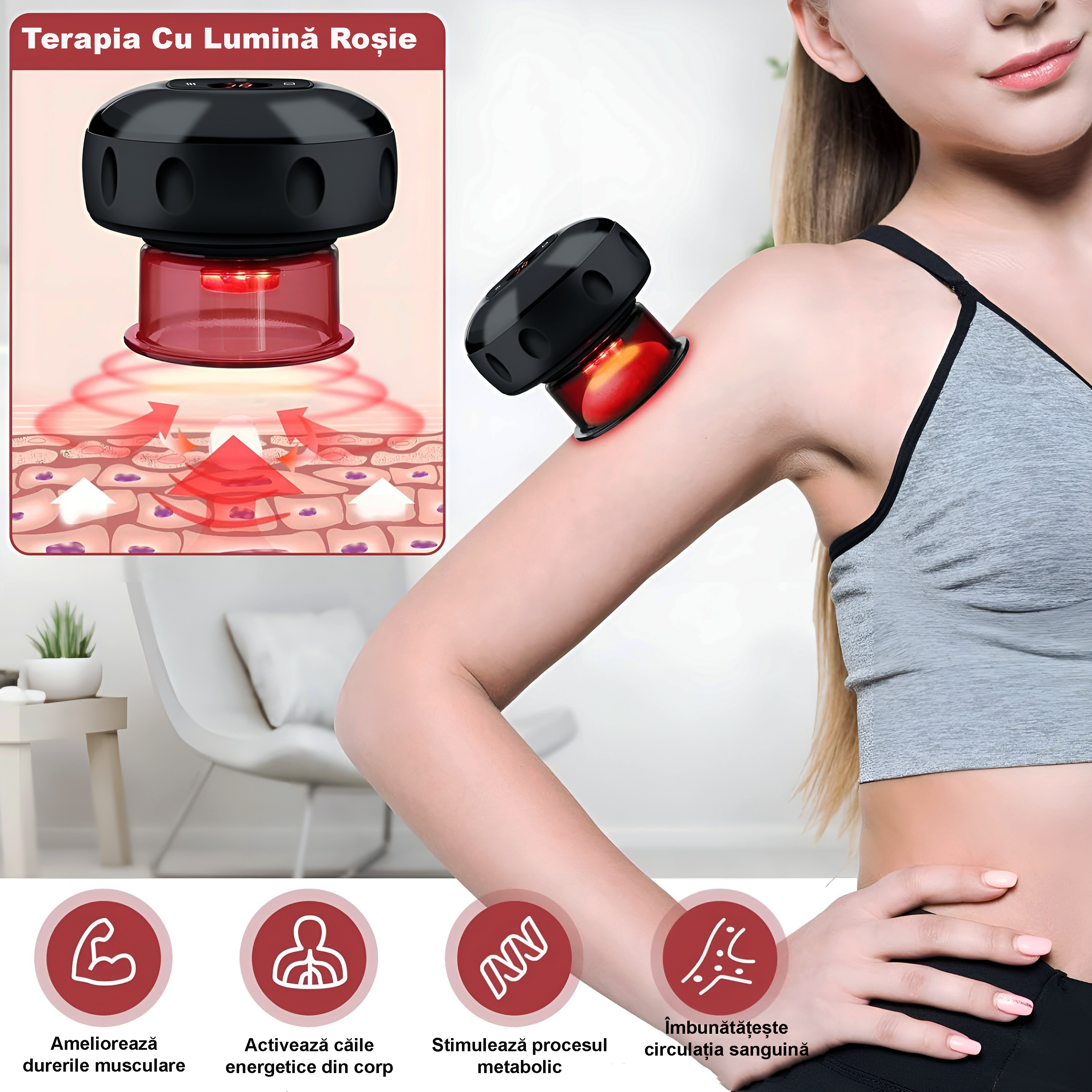 Detoxifierea Corpului: Aparatul contribuie la eliminarea toxinelor din piele si tesuturi, promovand o sanatate generala mai buna.