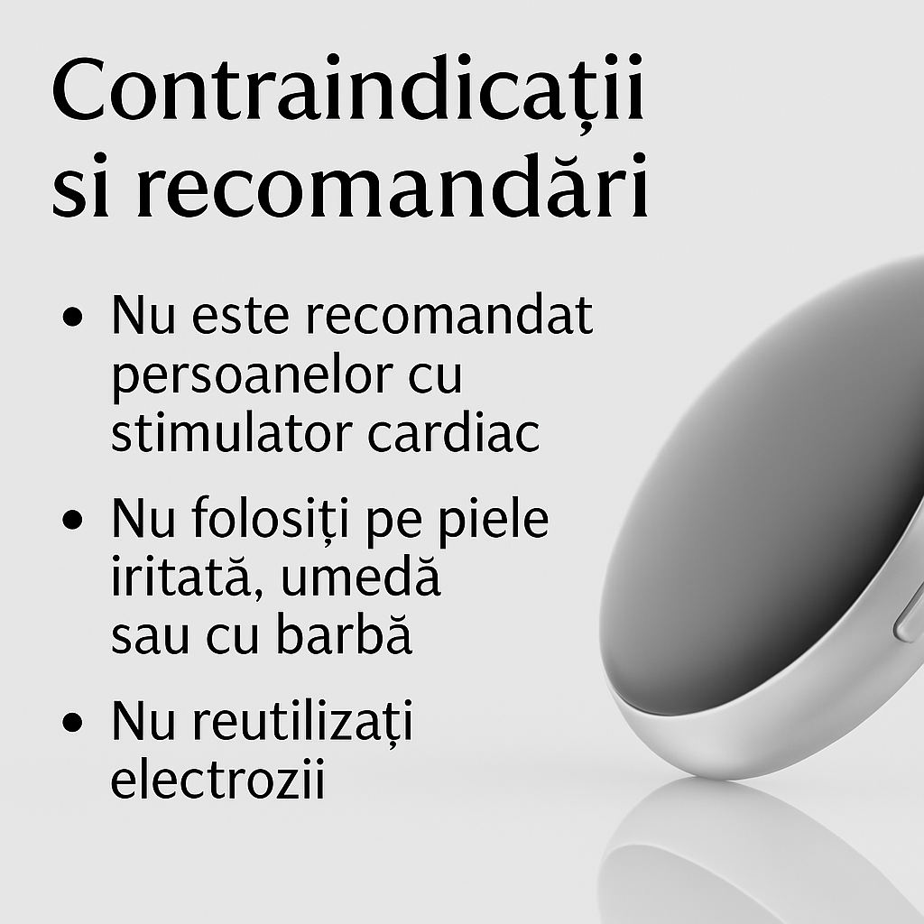 Contraindicat persoanelor cu stimulator cardiac, epilepsie, afectiuni cardiovasculare sau femeilor insarcinate