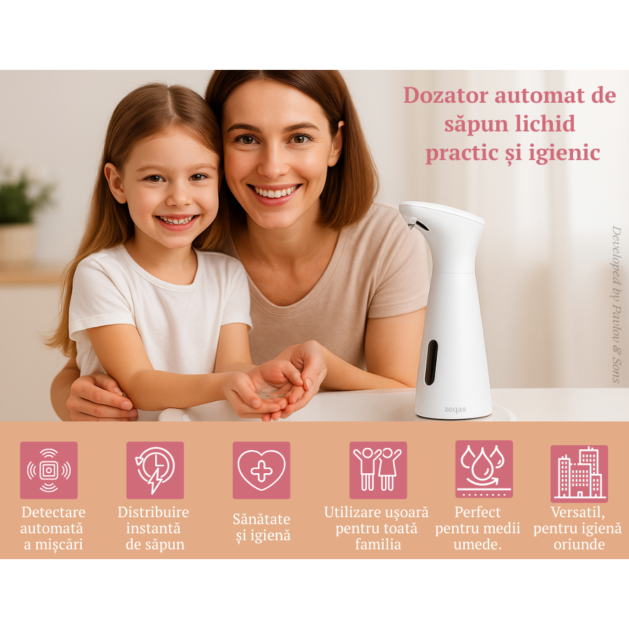 Daca iti doresti un dozator automat de sapun lichid cu design modern, functionalitate fara atingere si constructie durabila, ZEQAS este alegerea ideala. Eficient, igienic si usor de folosit – un plus de confort pentru orice spatiu.