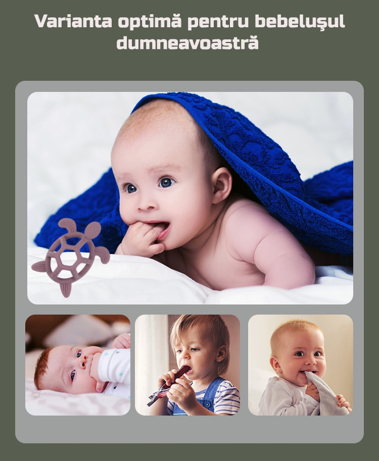 - Fabricata din 100% silicon alimentar: Jucaria de dentitie nu contine BPA, PVC, latex, ftalati sau plumb, fiind complet sigura pentru micutul vostru.