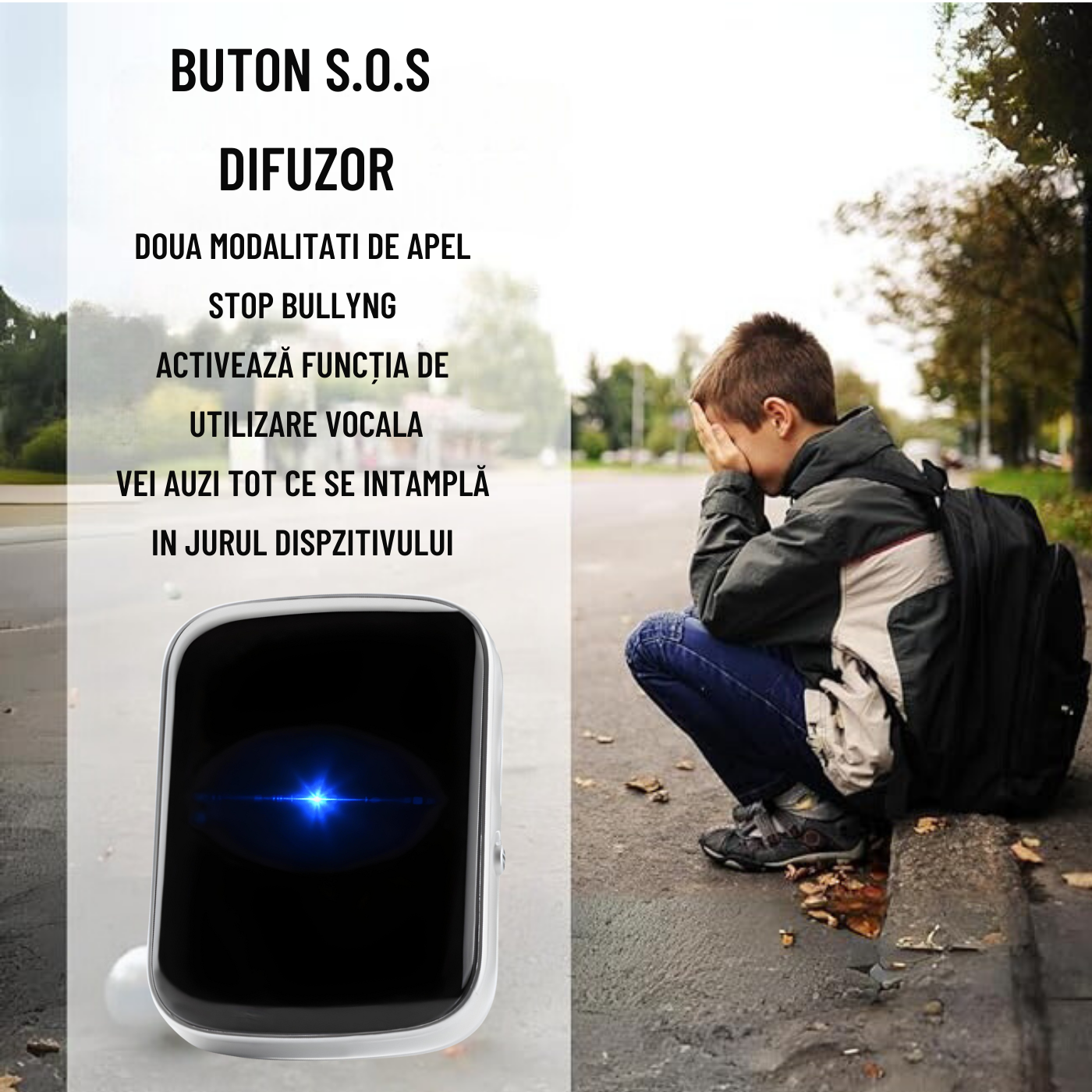 Buton SOS: Oferă un plus de siguranță, permițând copiilor să solicite ajutor rapid în situații de urgență prin simpla apăsare a butonului.
