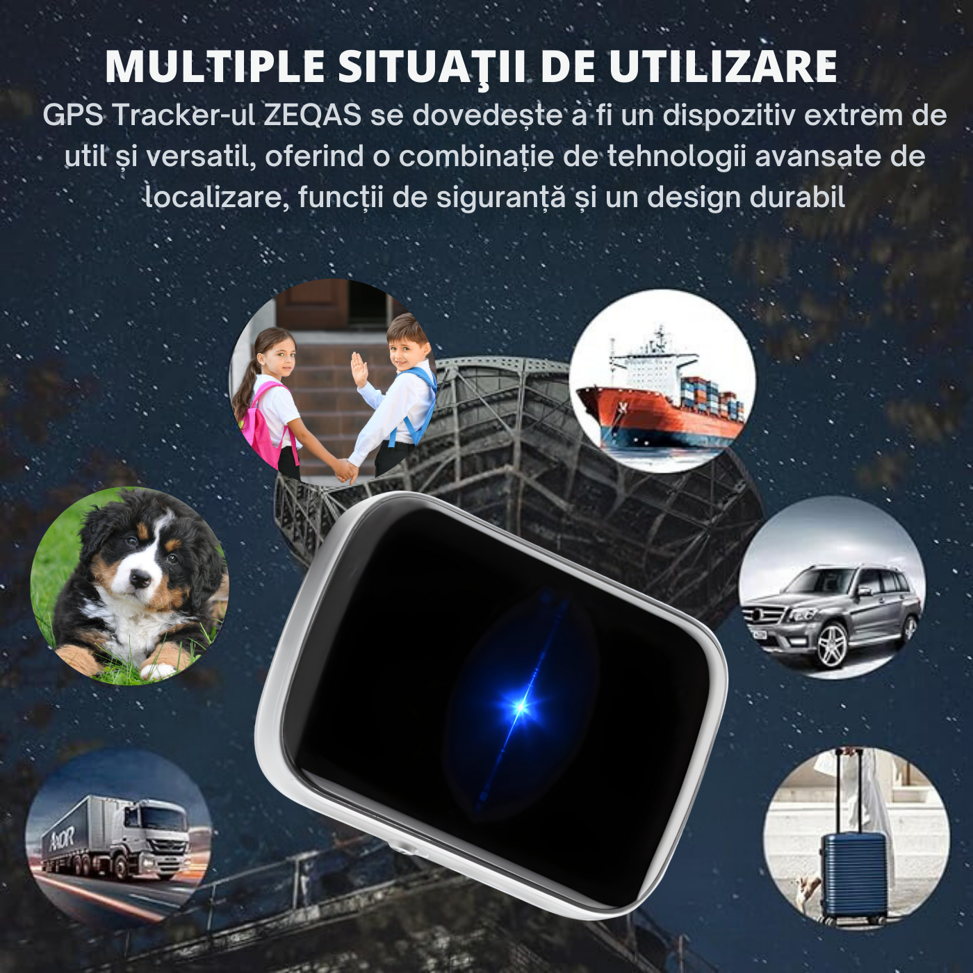 Localizator GPS A21 ZEQAS pentru Bagaje, Animale si Copii – Pozitionare cu GPS, LBS (Retele GSM) si WiFi, Precizie GPS 5~15m, Apelare, Gard Electronic (Alerta la Intrare/Iesire), Economisire Energie, Baterie 1000mAh, Monitorizare pe Android/iOS, Negru