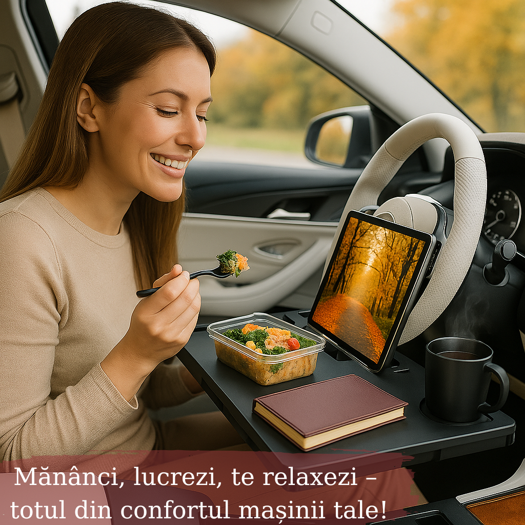 Masa asta a devenit un accesoriu indispensabil in masina mea. Nu doar ca imi permite sa lucrez comod, dar si sa mananc in siguranta. Sistemul de prindere pe volan este solid si nu am avut nicio problema cu stabilitatea, chiar si pe drumuri mai accidentate.